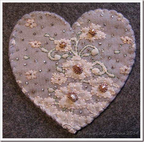 I absolutely love your needlework, especially the lace and pearl heart. So glad you are stitching again.